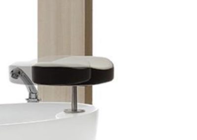 Les accoudoirs sont plus larges et les barquettes pour la manucure sont amovibles. La rotation du siège arrive à +/-90 dégrés pour faciliter la montée et la descente.